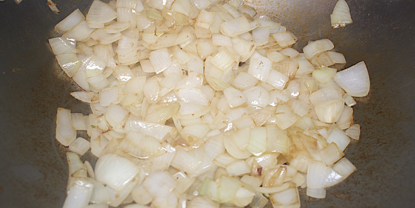 - 加入剛剛拌炒好的洋蔥,和製作牛肉湯所有食材,再一起拌炒加入醬油、米酒、辣豆瓣醬、不辣豆瓣醬,中小火翻炒5分鐘(依個人口味調整鹹度)。